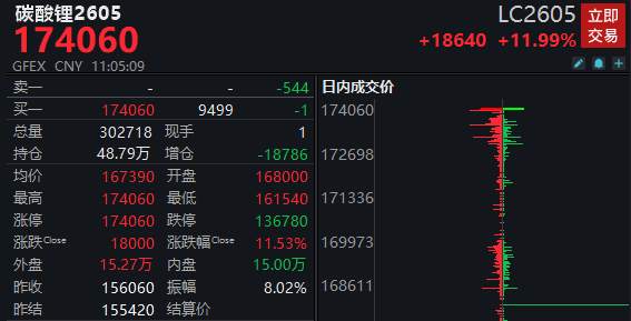 碳酸锂期货,涨停!
