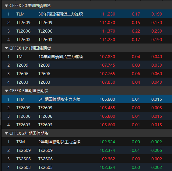 国债期货早盘收盘多数上涨
