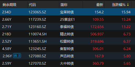 上证报中国证券网讯 1月13日,中证转债指数午盘下跌0.79%,报516.73点。宝莱转债、泰福转债、精达转债、松霖转债涨幅居前,分别涨15.94%、13.22%、6.73%、6.37%。崧盛转债、再22转债、天箭转债跌幅居前,分别跌12.47%、11.17%、9.35%。