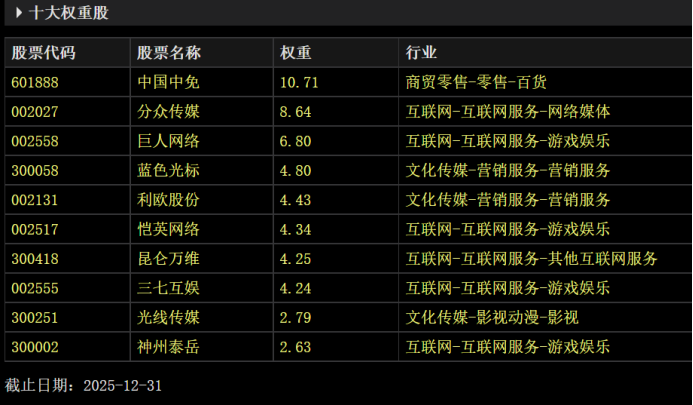 这种高度重合并非偶然,而是与中证文娱传媒指数的定位有关。中证文娱传媒指数选取的业务涉及视频、直播、游戏、电影、数字营销、在线教育等符合新技术和新消费发展趋势的上市公司证券,正是GEO革命的核心受益者。