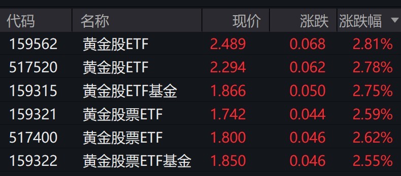 黄金概念股走强,黄金股相关ETF涨超2%