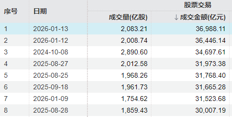 据Wind,A股历史上共有8个交易日成交额超3万亿元。