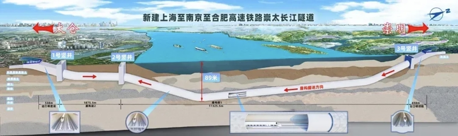 崇太长江隧道是国家“两重项目”沪渝蓉高铁(北沿江高铁)沪宁段的关键控制性咽喉工程,连接着上海市崇明区与江苏省太仓市,是南通“八龙过江”中第六条通道——“南隧北桥”的组成部分,是目前我国建设标准最高、掘进距离最长、规模最大的高铁越江隧道。该隧道由长江沿岸江苏公司建设、上海国铁建管公司建设管理、中铁隧道局施工建设。