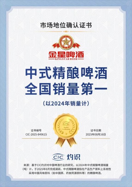 在啤酒精酿赛道,金星啤酒是中国精酿啤酒第三大企业和中国最大的风味精酿啤酒企业,市场占有率达14.6%。按2024年销量计,金星啤酒中式精酿啤酒销量位居全国第一。
