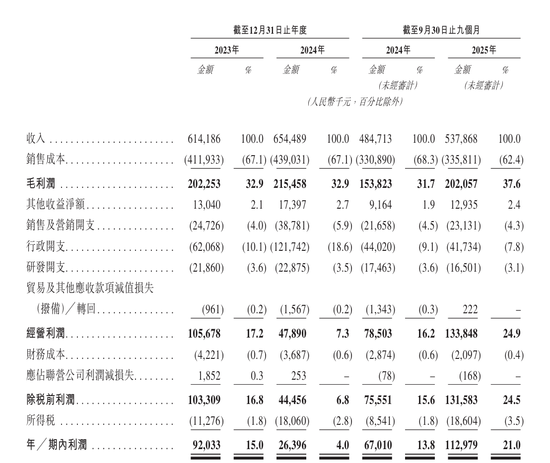 业绩方面,招股书显示,上海生生报告期(2023年度、2024年度、2025年前三季度)各期分别实现收入约6.14亿元、6.54亿元、5.38亿元,实现利润9203.3万元、2639.6万元、1.13亿元。
