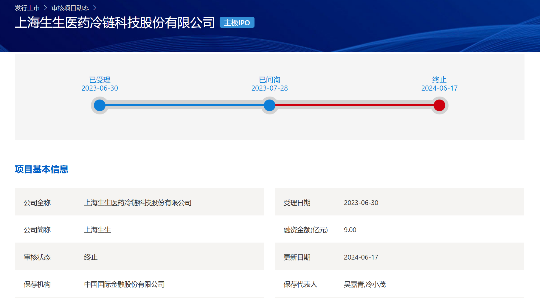 1月13日,上海生生医药冷链科技股份有限公司(简称“上海生生”)向港交所主板递交上市申请,中金公司、国金证券(香港)为其联席保荐人。