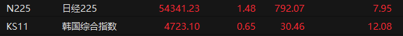1月14日,日韩股市收盘齐涨。日经225指数收涨1.48%,报54341.23点;韩国综合指数收涨0.65%,报4723.1点。