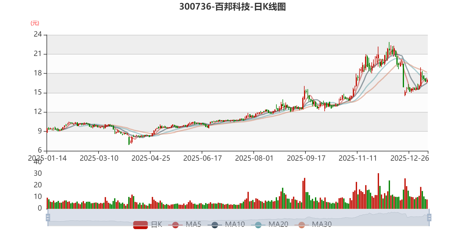 中证智能财讯百邦科技(300736)1月14日晚间披露2025年度业绩预告,预计2025年实现营业收入4.1亿元至4.3亿元;归母净利润亏损2400万元至3000万元,上年同期亏损1547.76万元;扣非净利润亏损2300万元至2900万元,上年同期亏损2131.43万元。以最新收盘价计算,市净率(LF)约25.42倍,市销率(TTM)约5.18倍。