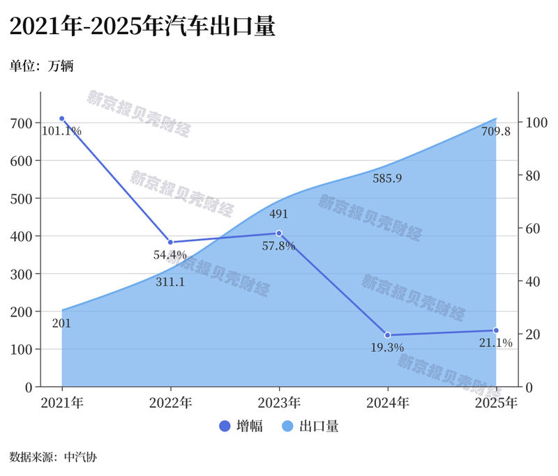 在2024年首次成为全球第一大汽车出口国后,我国汽车出口依旧强劲。2025年,我国汽车出口达到709.8万辆,同比增长21.1%。