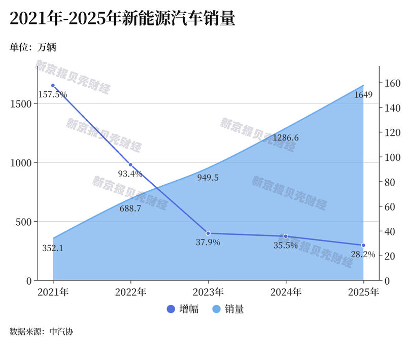 从2021年的352.1万辆到2025年的1649万辆,一路“开挂”的中国新能源汽车正在不断刷新历史成绩。