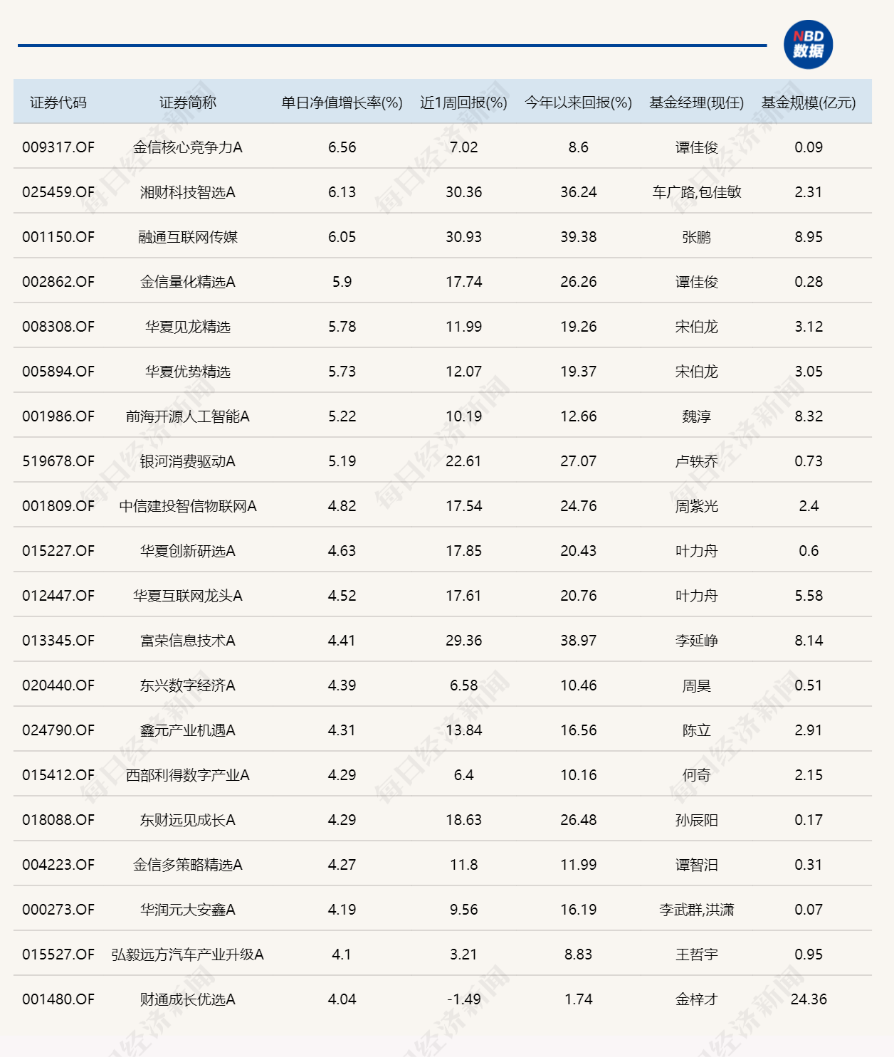 A股画风突变,但仍有逾20只基金单日涨超4%