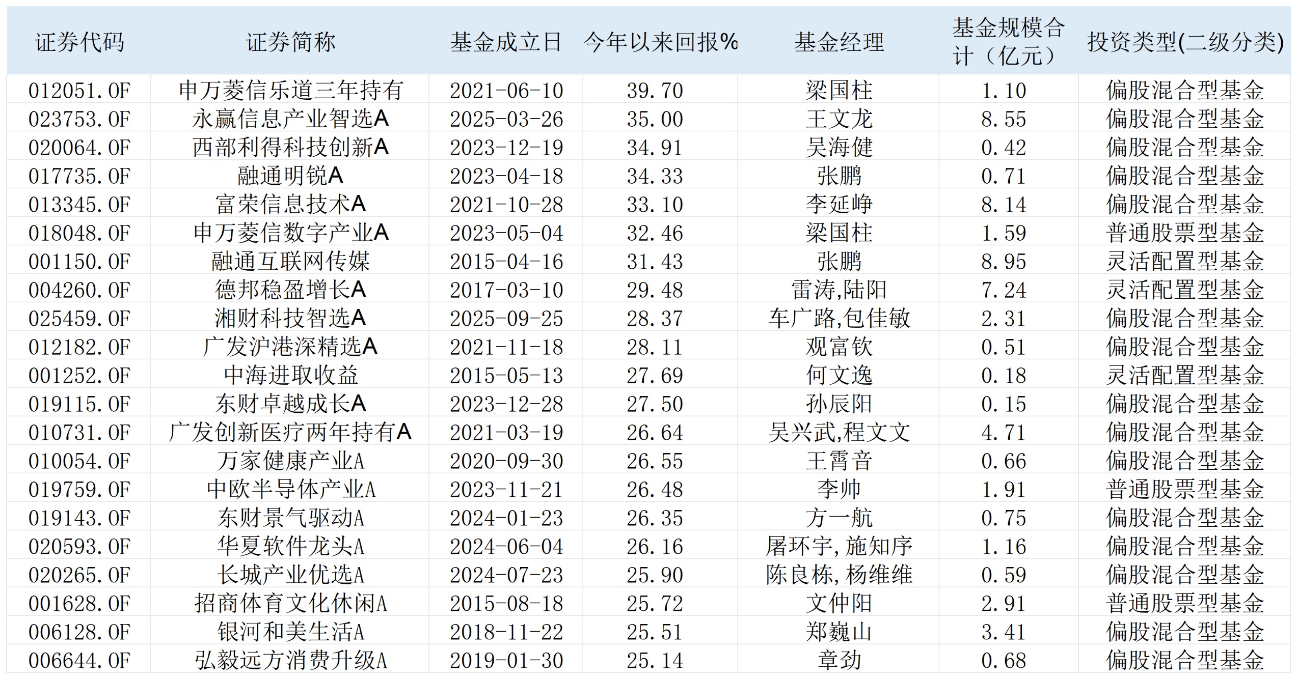 表:截至1月13日,今年以来回报率超25%的主动权益基金明细来源:Wind 界面新闻整理