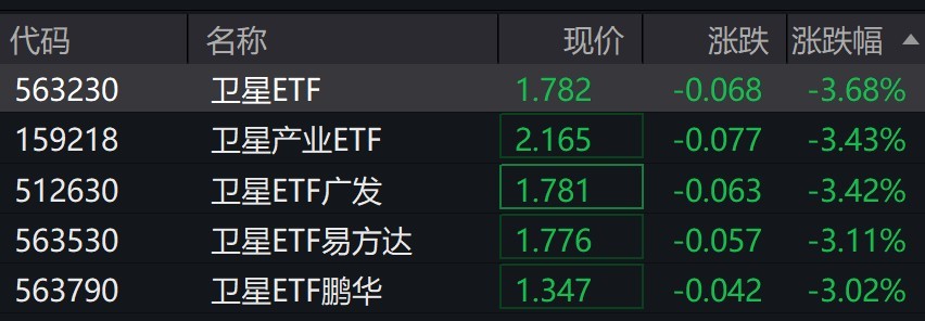 卫星概念股开盘走低,卫星相关ETF跌超3%