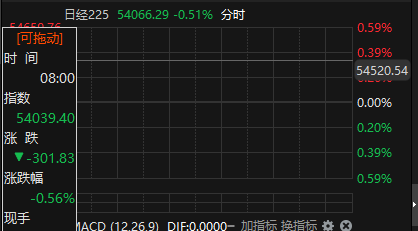 上证报中国证券网讯 1月15日,日韩股市开盘齐跌,日经225指数跌0.56%,报54039.40点;韩国综合指数跌0.27%,报4710.28点。