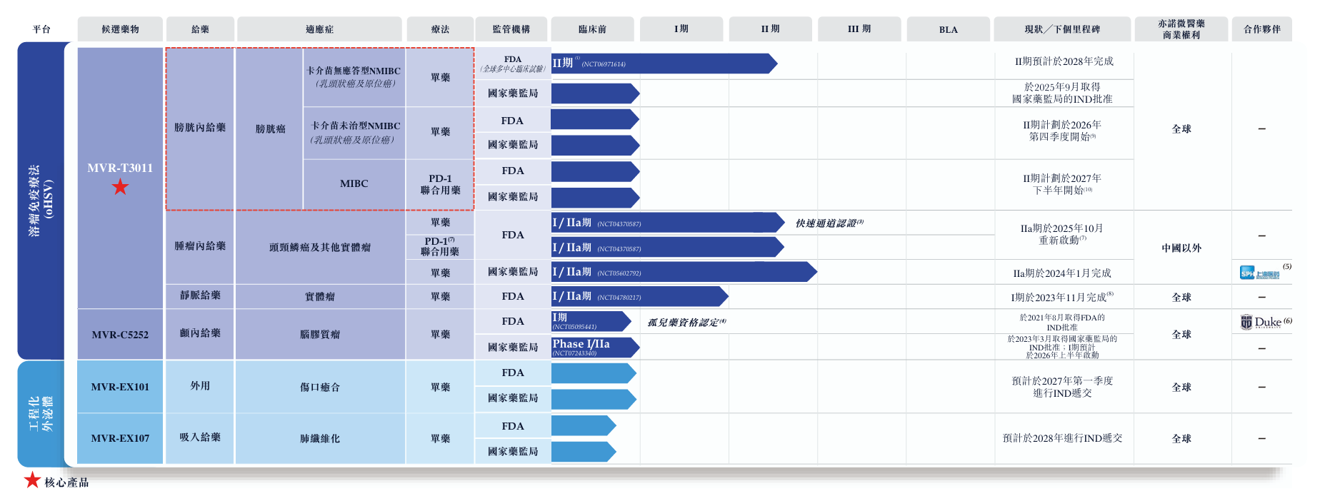 最新招股书披露,公司所列示在研管线中,仅核心产品MVR-T3011的膀胱内给药、肿瘤内给药进入了临床试验II期阶段。这表明,亦诺微医药目前尚无任何一款产品成功完成临床Ⅲ期试验并实现商业化销售。