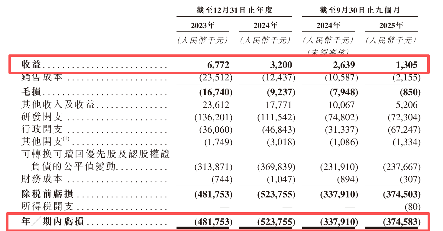 2023年至2024年及2025年前三季度(下称“报告期”),亦诺微医药收益分别为677.2万元、320万元和130.5万元;期内分别亏损4.82亿元、5.24亿元、3.75亿元,累计亏损13.81亿元,主要来自与研发活动及行政活动有关的开支。