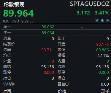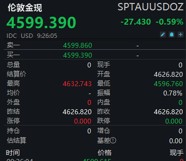 【大河财立方消息】1月15日,现货黄金、现货白银价格双双下挫。截至发稿,现货黄金价格失守4600美元大关,跌0.59%;现货白银价格下挫3.41%,报89.96美元/盎司。