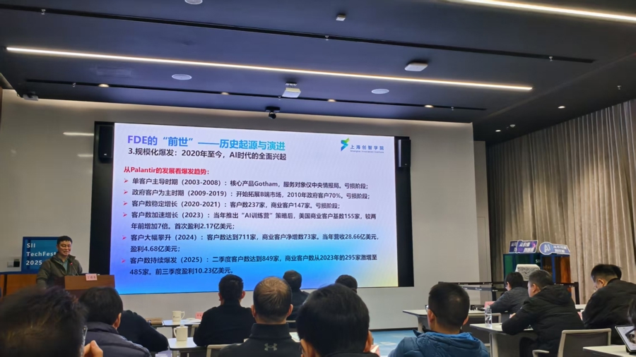 2023年,数据分析公司帕兰蒂尔(Palantir)推出采用FDE模式的“AI训练营”,当年商业客户数量就增长到155家,较两年前增加7倍。截至2025年9月,帕兰蒂尔商业客户已达485家,盈利超10亿美元。其做法是,先构建一个模型展示给潜在客户,收集反馈,然后改进,不断重复这个过程直到产品能解决客户问题。