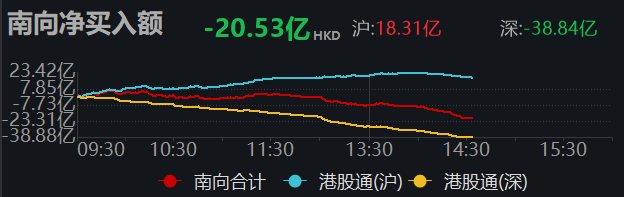 1月15日14时34分,南向资金净卖出超20亿港元。