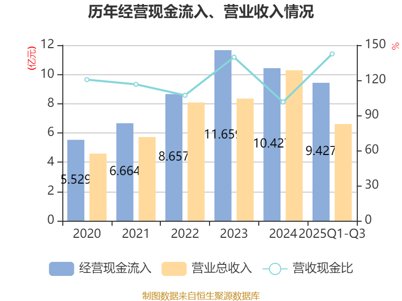 数据显示,2024年公司加权平均净资产收益率为23.12%,较上年同期上升0.27个百分点。2025年前三季度公司加权平均净资产收益率为12.42%。