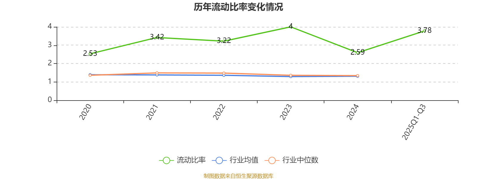 2025年前三季度,公司流动比率为3.78。
