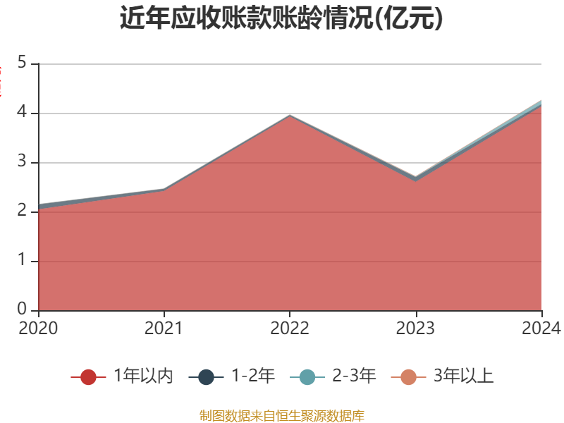 从应收账款账龄结构来看,截至2024年末,公司账龄在1年以内的应收账款余额为4.13亿元,较上年末增长1.53亿元。