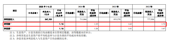 此外,该行投资业务也存在一定风险敞口,截至2025年6月末,债券投资余额1981.60亿元(含同业存单),其中企业债券83.49亿元,非标准化债权类资产投资账面价值49.99亿元,这些投资在市场波动和信用风险暴露下,可能对投资收益造成进一步冲击。