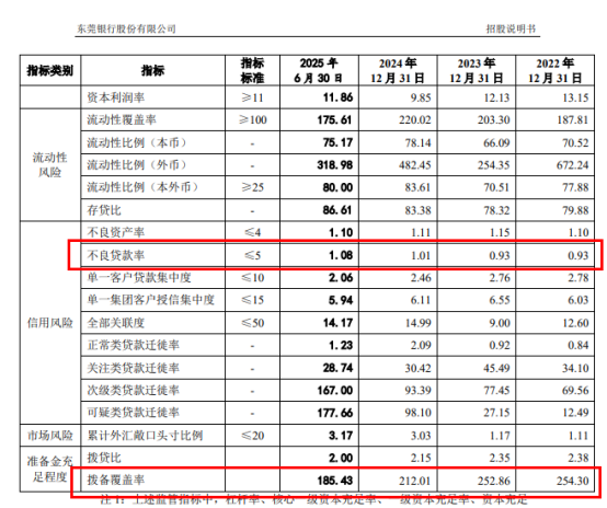 在资产质量方面,该行不良贷款率呈现小幅反弹态势。截至2025年6月末,东莞银行不良贷款率为1.08%,较2024年末的1.01%有所上升,也高于2022-2023年0.93%的平均水平。不过从行业对比来看,这一数值仍低于全国银行业的平均水平,显示出其资产质量整体仍处于可控范围。