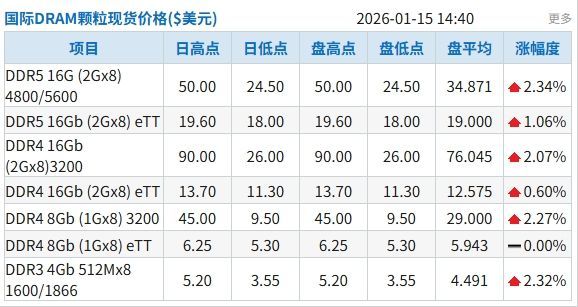 DRAM部分颗粒报价持续攀升
