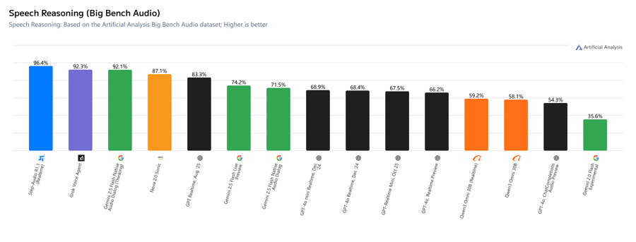据了解,该榜单是目前业界评估“原生语音模型”(Native Audio Models)最权威的第三方基准之一。核心考量模型直接处理音频并进行复杂逻辑推理的能力,主要考察维度包括准确率、首包延迟等。