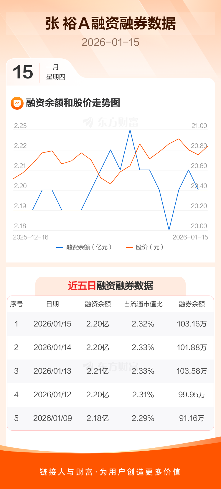 交易所最新数据显示,张 裕A于2026年1月15日获融资买入308.79万元,融资偿还260.52万元,当日融资净买入48.26万元。目前,该股融资余额2.20亿,占流通市值比例为2.32%。