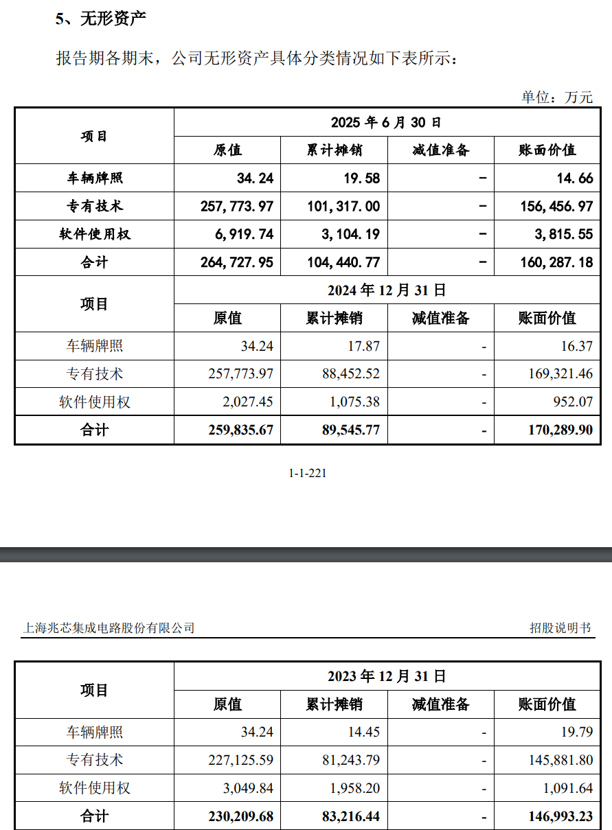 由于集成电路涉及行业的相关特征,为保持技术的先进性,芯片设计企业必须大力投入研发活动,这也形成了较高的无形资产。报告期各期末,兆芯集成无形资产分别为16.81亿元、14.7亿元、17.03亿元和16.03亿元,占总资产之比分别为24.98%、21.24%、30.74%和26.87%。对此,兆芯集成解释称,无形资产金额较大,主要由外购和自主研发形成的专有技术构成。