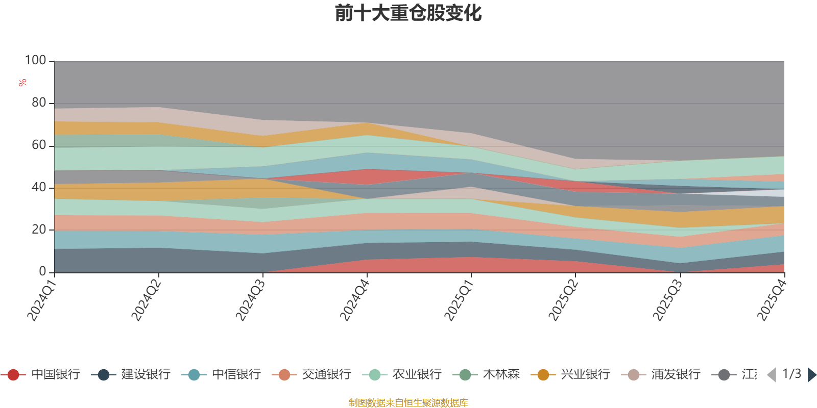 该基金持股集中度较高。截至2025年四季度末,基金十大重仓股分别是工商银行、兴业银行、中信银行、建设银行、交通银行、平安银行、中国银行、中国平安、中芯国际、华虹公司。