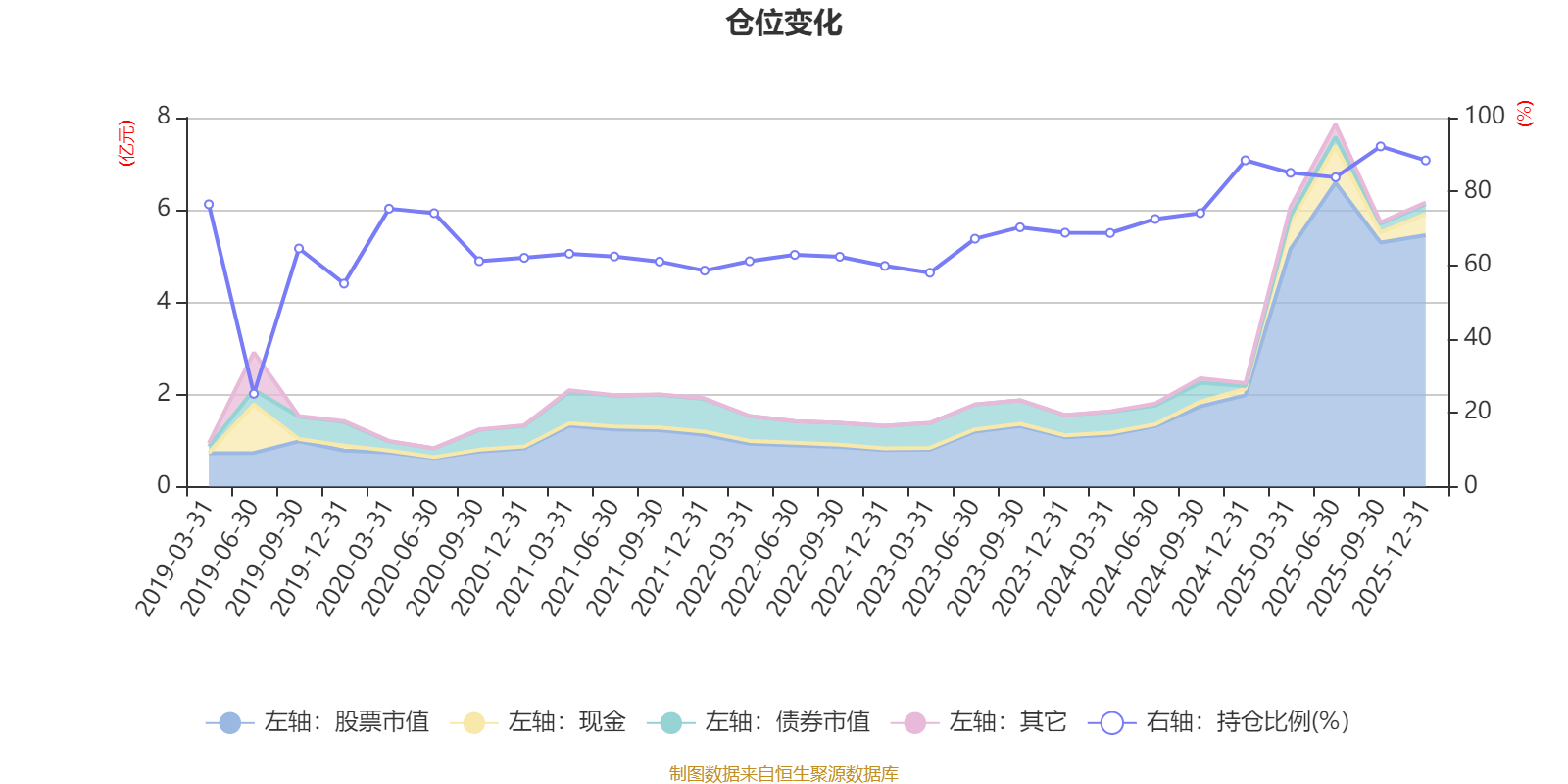 据定期报告数据统计,近三年平均股票仓位为76.46%,同类平均为72.46%。2025年三季度末基金达到92.2%的最高仓位,2019年上半年末最低,为25.16%。