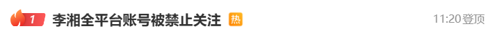 1月16日,微博话题#李湘全平台账号被禁止关注#冲上热搜第一。