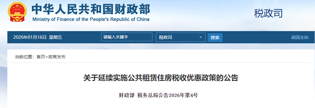 近日,财政部、税务总局联合发布《关于延续实施公共租赁住房税收优惠政策的公告》,继续支持公共租赁住房建设和运营。