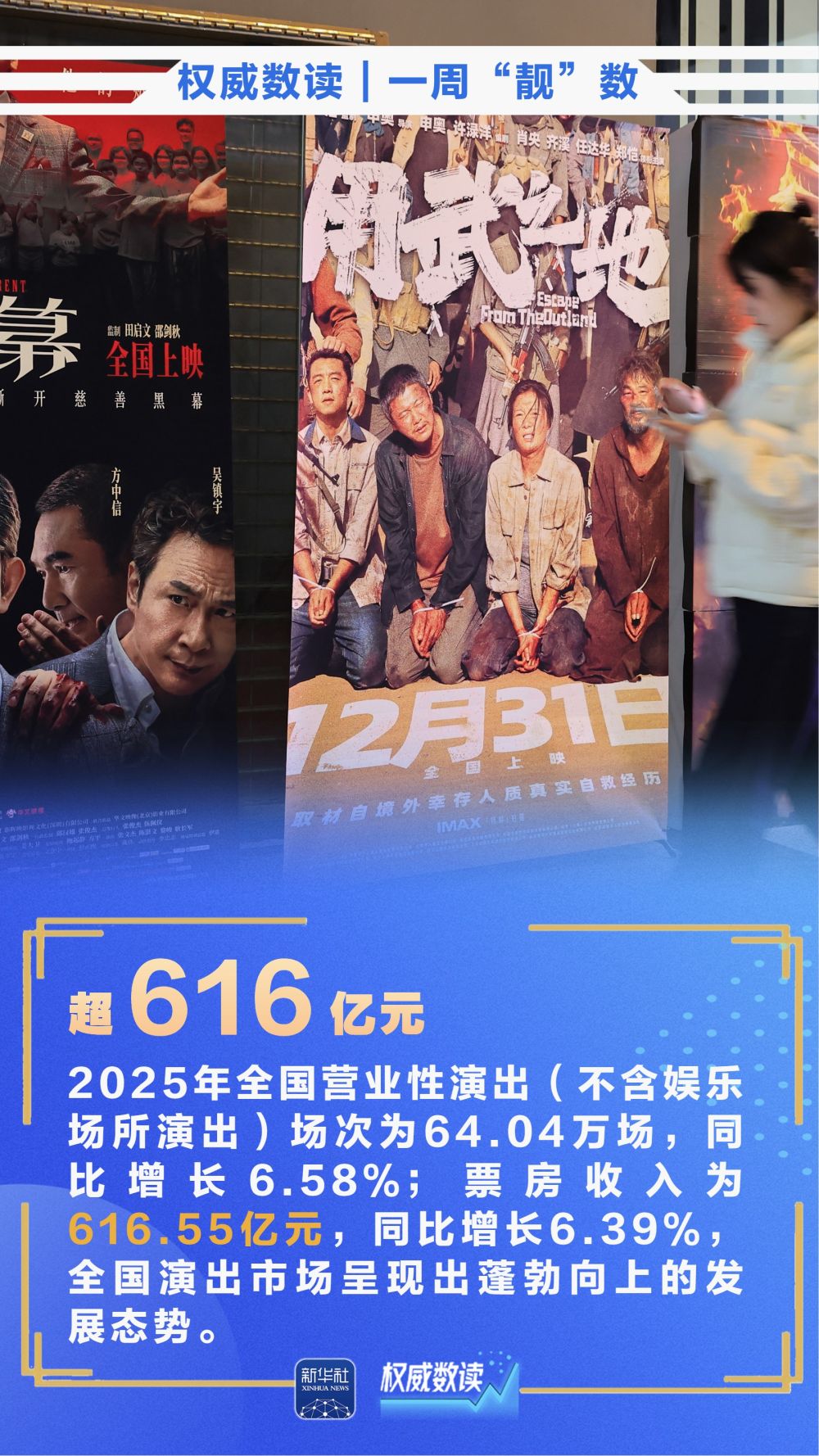 2025年,我国货物贸易进出口总值45.47万亿元,连续9年保持增长;汽车产销量双双突破3400万辆,连续17年稳居全球第一;全国营业性演出票房收入超616亿元……本周,这些数据最值得关注!