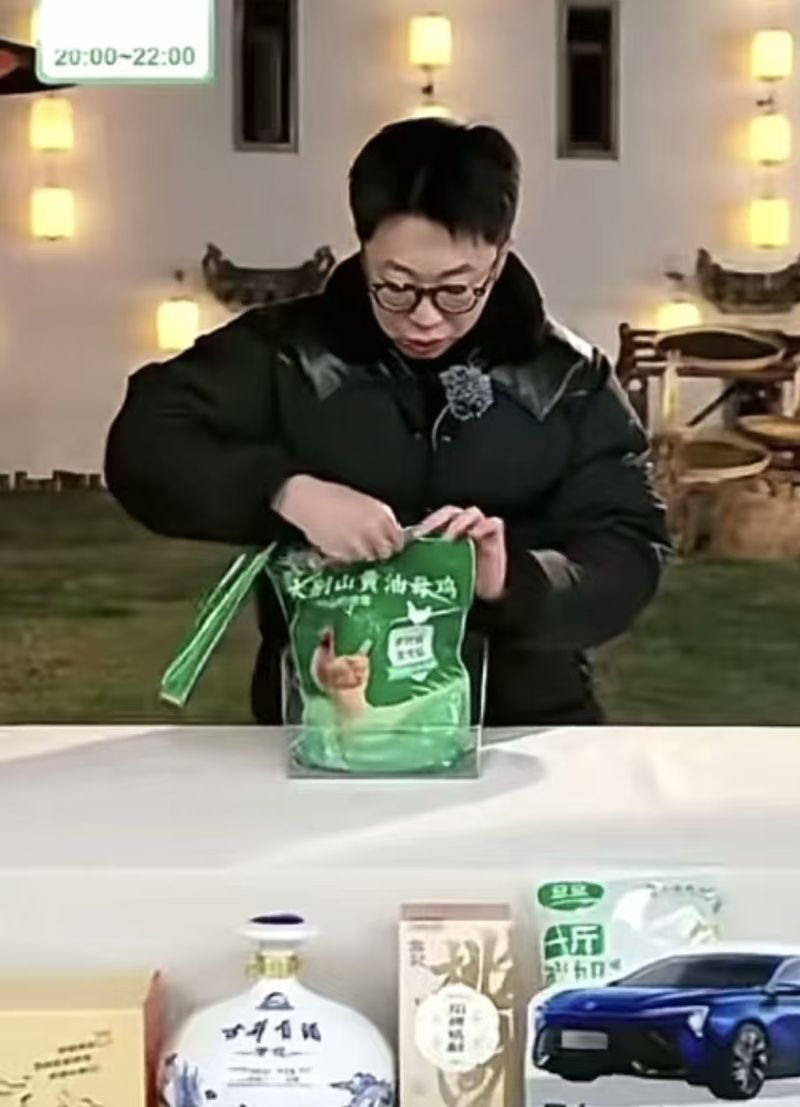 “与辉同行”现场展示的产品包装为“大别山黄油母鸡”。 网友直播录屏截图