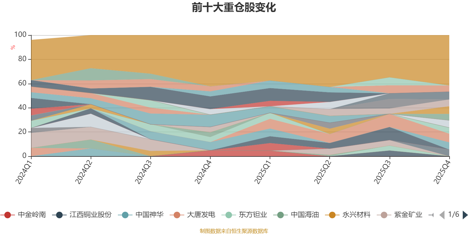 该基金持股集中度较高。截至2025年四季度末,基金十大重仓股分别是华友钴业、金诚信、盛屯矿业、云铝股份、焦作万方、藏格矿业、神火股份、山金国际、洛阳钼业、天山铝业。