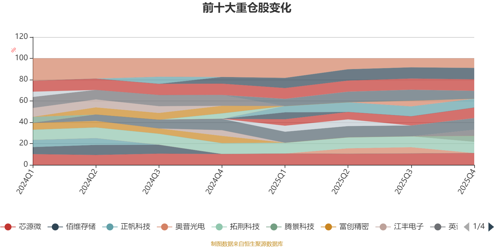 该基金持股集中度较高,近2年前十大重仓股集中度长期超过60%。截至2025年四季度末,基金十大重仓股分别是芯源微、中科飞测、中微公司、茂莱光学、拓荆科技、福晶科技、波长光电、汇成真空、英诺激光、腾景科技。