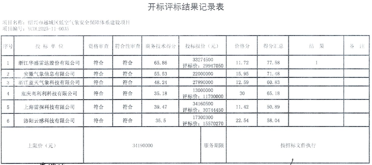 天眼查APP信息显示,2025年12月,绍兴市越城区低空气象安全保障体系建设项目的发标单位正是浙江空域融合,华盛雷达最终以3327.45万元中标该项目。