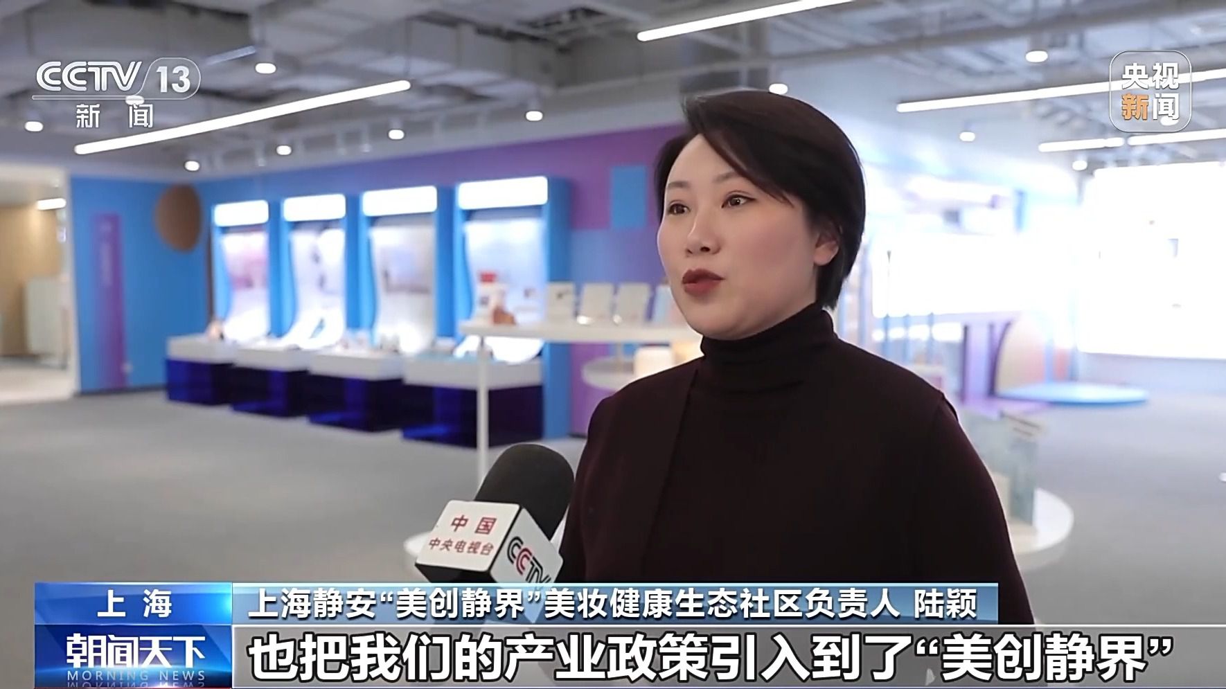 上海静安“美创静界”美妆健康生态社区负责人陆颖:也把产业政策引入到了“美创静界”,鼓励企业做研发,鼓励企业做首发,鼓励企业更多地能够开放自己的视野,对接更多的国际资源。