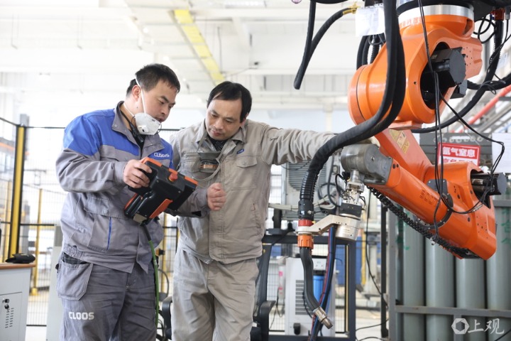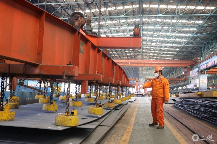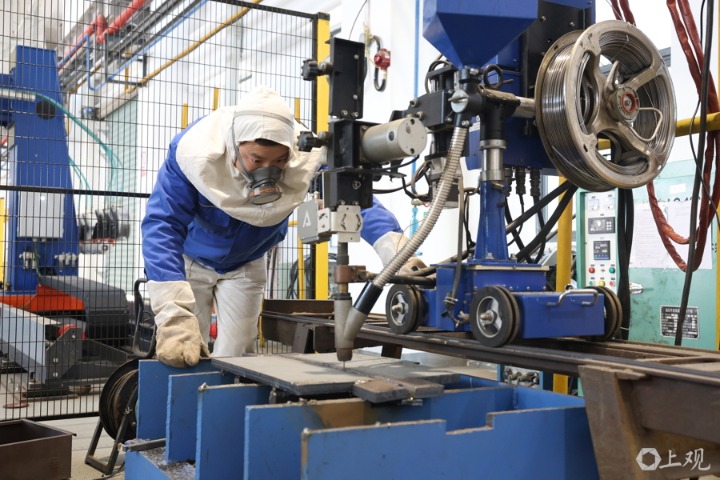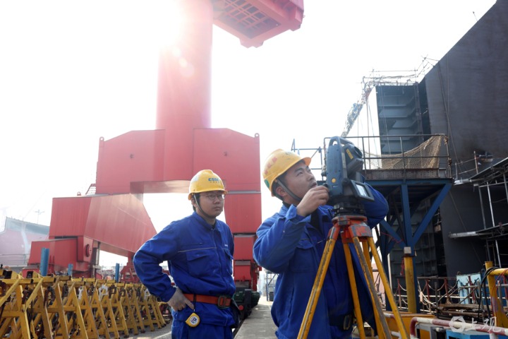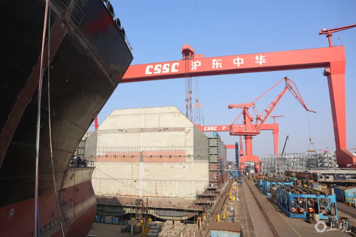新年伊始,中国船舶集团旗下沪东中华造船(集团)有限公司长兴岛新厂区一派繁忙,在建船舶停满船坞,单个船坞内便有四艘同时在建;待交付的船舶披上彩妆屹立于码头,内部忙着进行设备调试;加工车间内机器轰鸣火花四起,工人和机器人协作默契,将一片片钢板加工成分段组件,周而复始形成闭环。