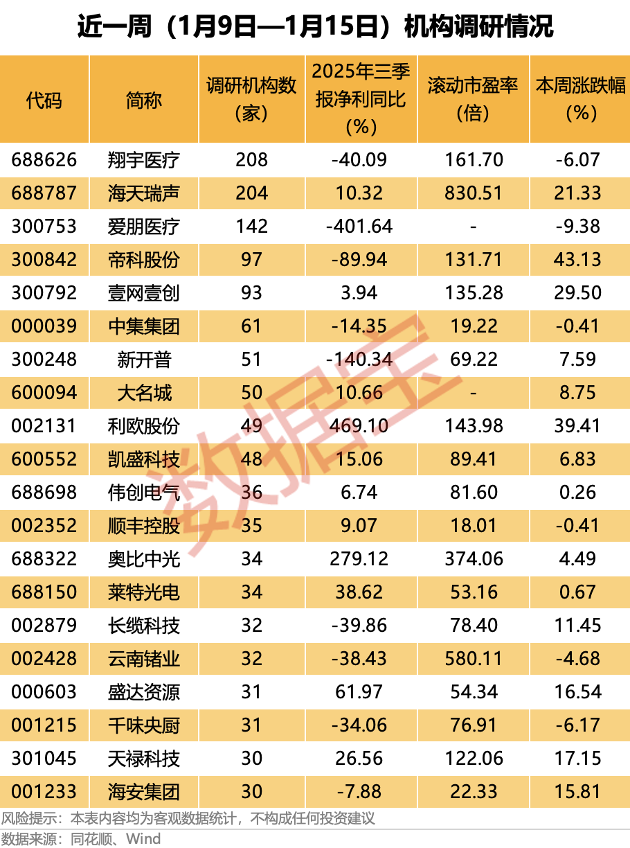 近一周机构调研超170只个股 翔宇医疗调研机构数最多