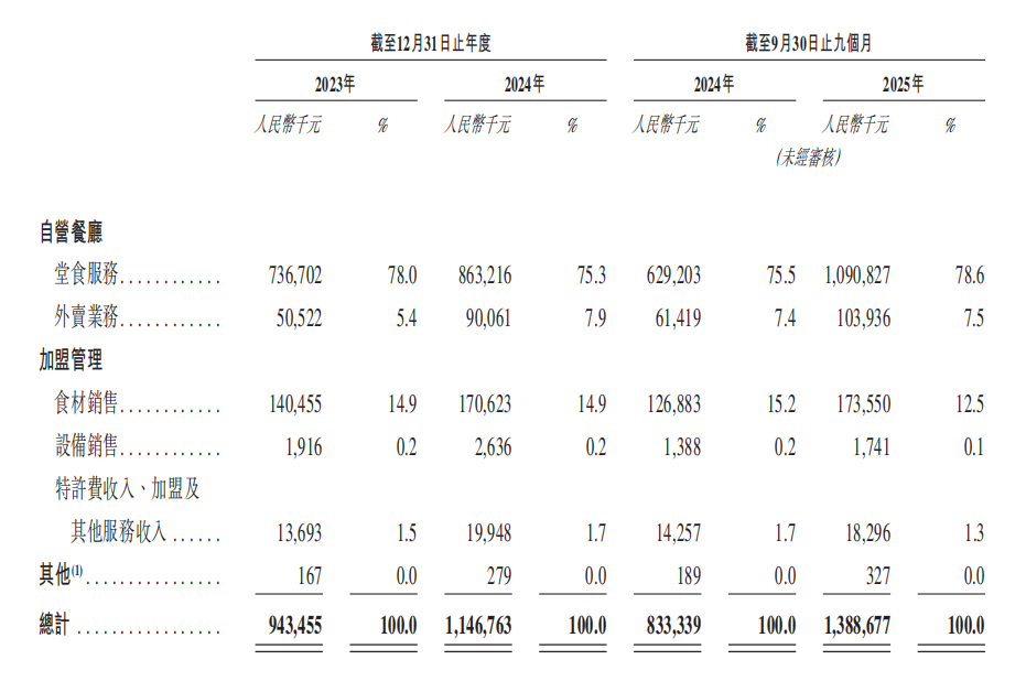 业绩方面,2023年、2024年及2025年前9个月,公司分别实现营收9.44亿元、11.47亿元、13.89亿元,值得注意的是,虽然营收逐年攀升,但利润率有所下滑,招股书显示,2023年、2024年比格披萨期内利润分别为4752万和4174万元,净利润率分别为5.0%和3.6%。