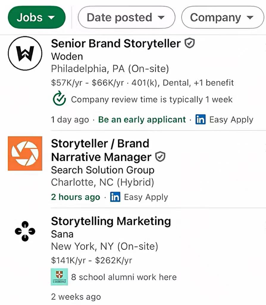 过去一年,“故事官”(Storyteller)成为LinkedIn备受关注的职业。《华尔街日报》指出,越来越多的企业如Google、Microsoft、Notion等科技公司以高薪聘请“故事官”(Storyteller),岗位数量翻了一番。在媒体传播领域,相关岗位达到了7万多个。