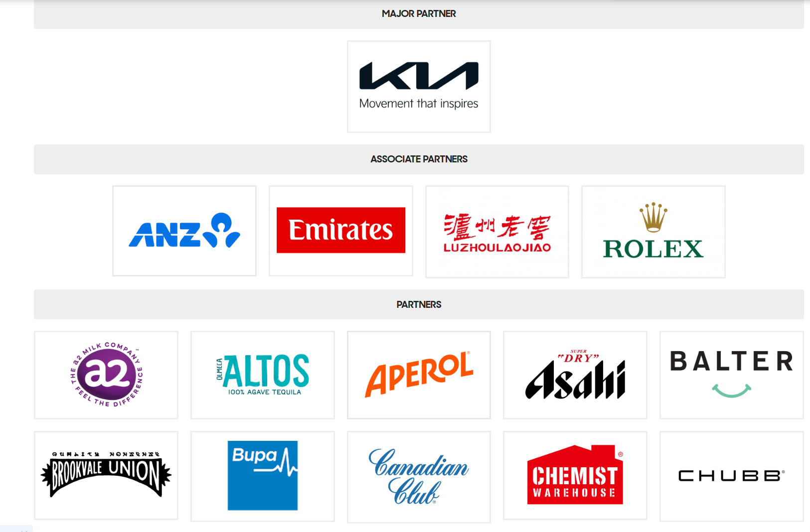 澳网合作伙伴分为三个层级/图片来源:澳网官网