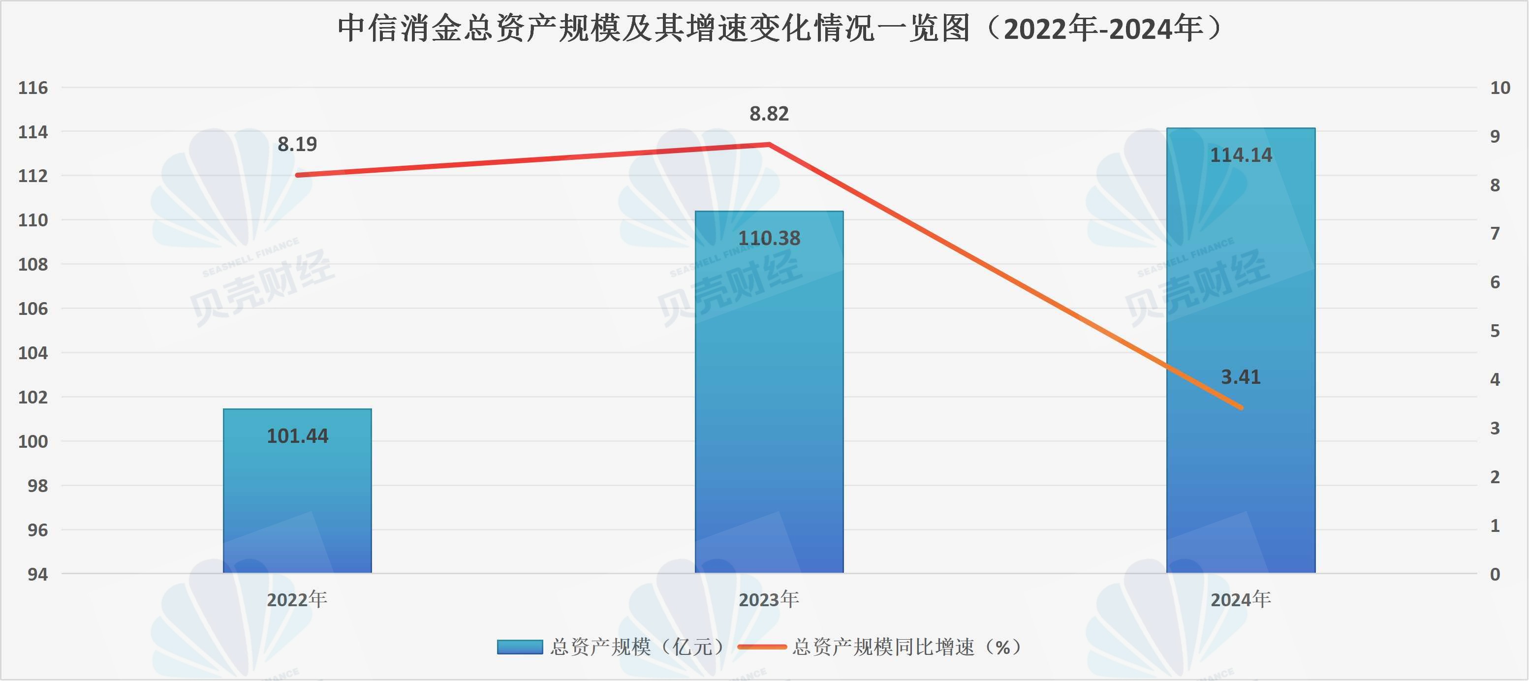 中国中信金融控股有限公司2024年年报显示,报告期内,中信消金实现营业收入9.21亿元,较上年增长30.07%;中信消金总资产规模约为114.14亿元,较上年末增长3.41%,而这一增速水平已是自2022年以来的低点。