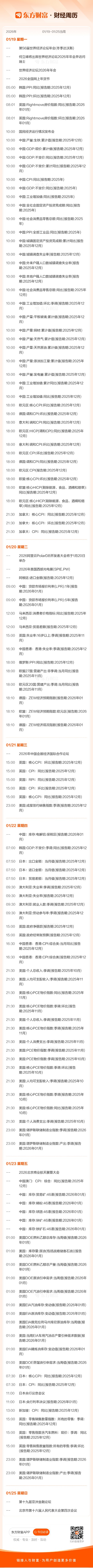 东方财富财经周历(1.19-1.25)