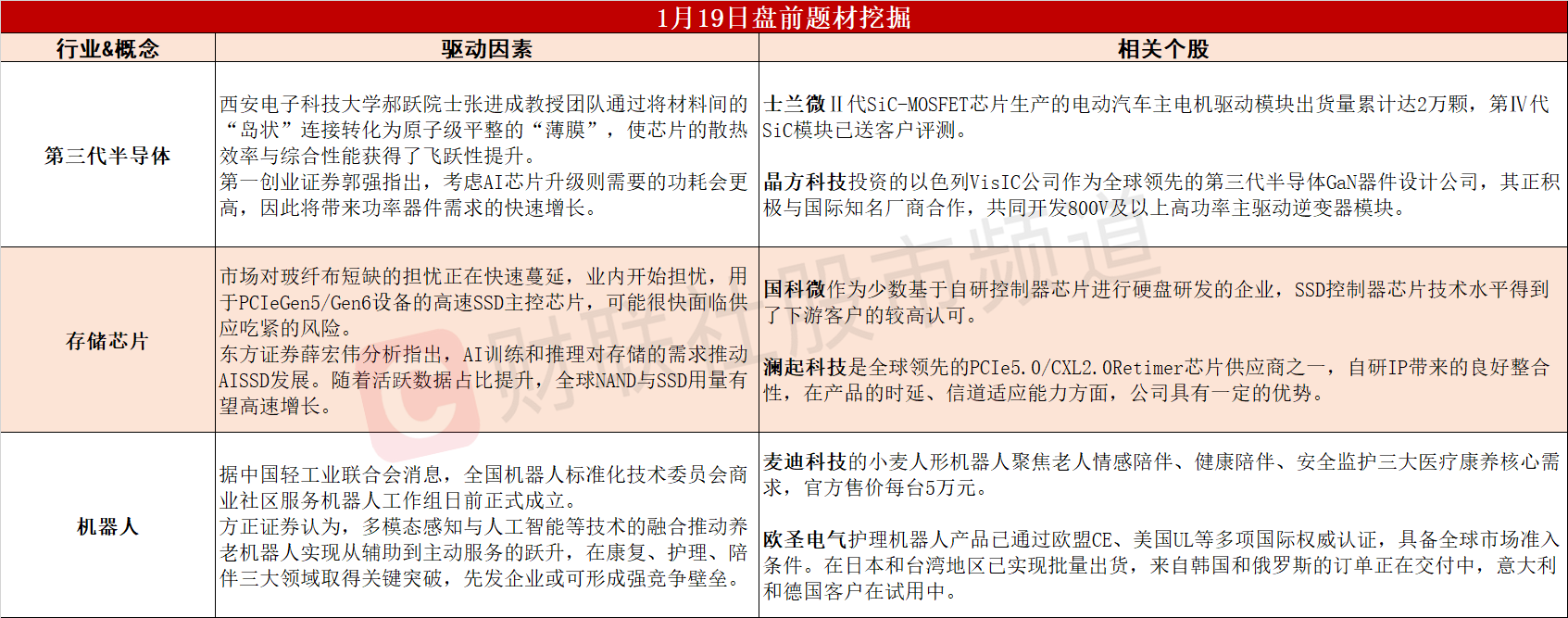 ①我国科研团队攻克芯片散热世界难题,氮化镓功率器件有望站上风口。②AI对存储的需求推动SSD发展,高速SSD主控芯片或供应吃紧。③“国标”工作组成立,服务机器人领域迎来重磅催化。
